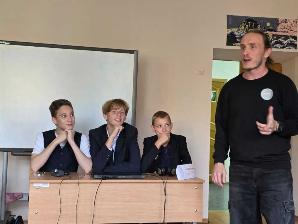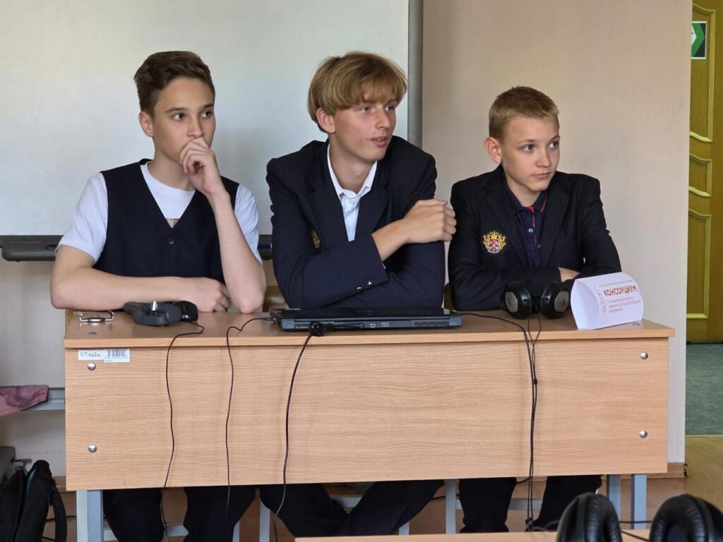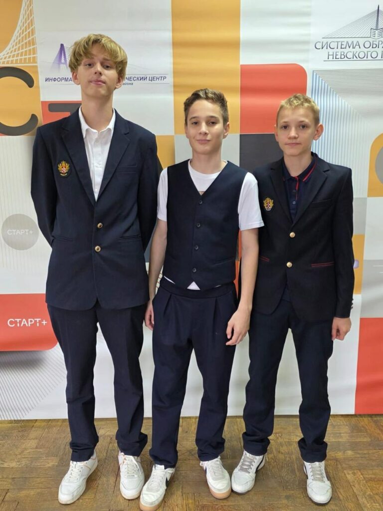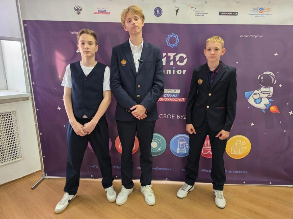 Забазлаев Филипп (8 «М»), Касаткин Андрей (8 «Е») и Хабохов Тимур (9 «Ж») под руководством наставника Евгения Алексеевича Беспятова.
