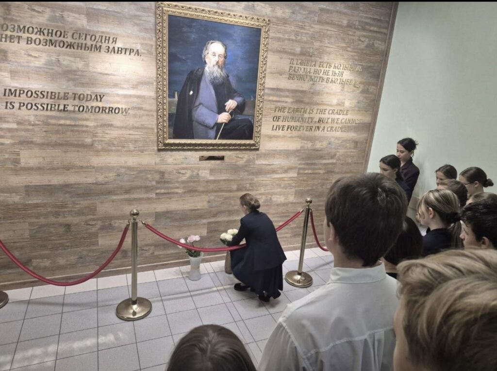 Вспоминая Константина Эдуардовича Циолковского, ученики профильных 7 «М» и 8 «М» классов возложили цветы к его портрету в знак уважения и благодарности за его вклад в космонавтику.
